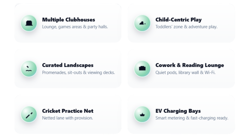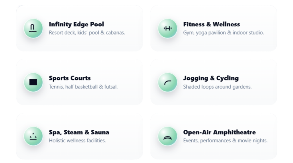 The community layout is designed to ensure clarity in movement, ample green pockets, well-defined vehicular circulation and a naturally flowing pedestrian experience across the site.